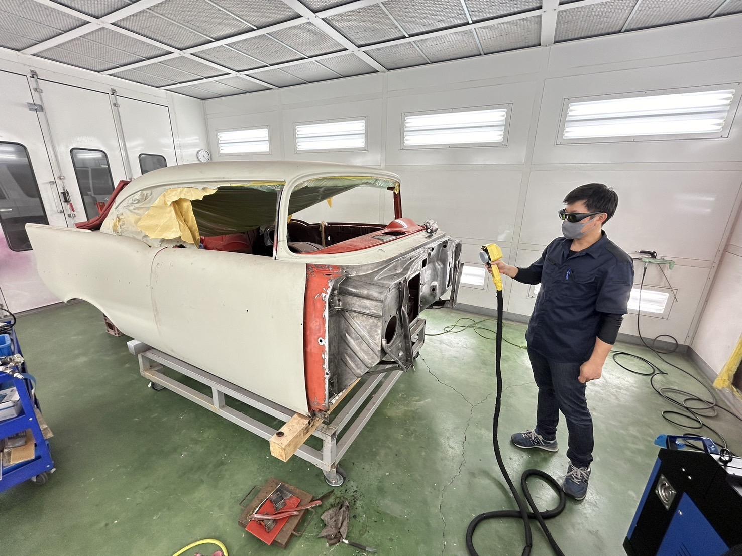整備現場になじむ1台。レーザーで効率化とデザイン性を両立。