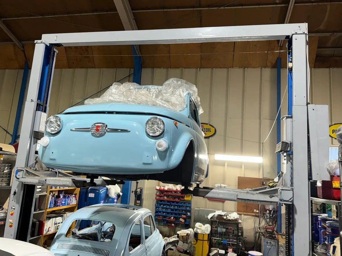 対象車両は、レストア中のFIAT500。
